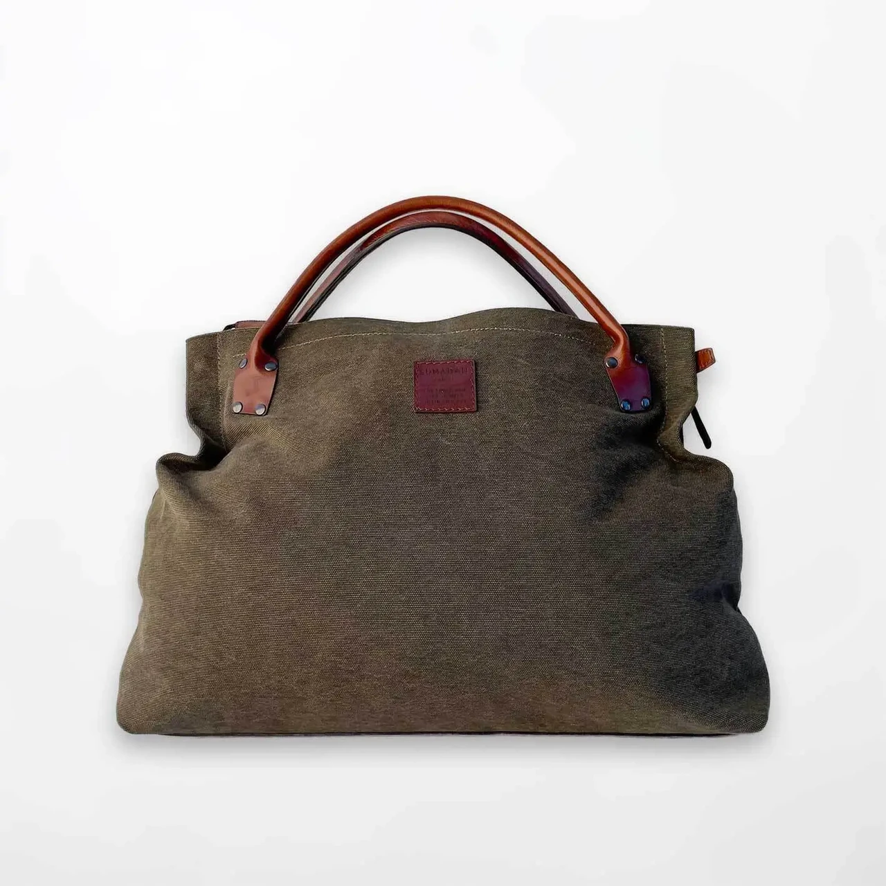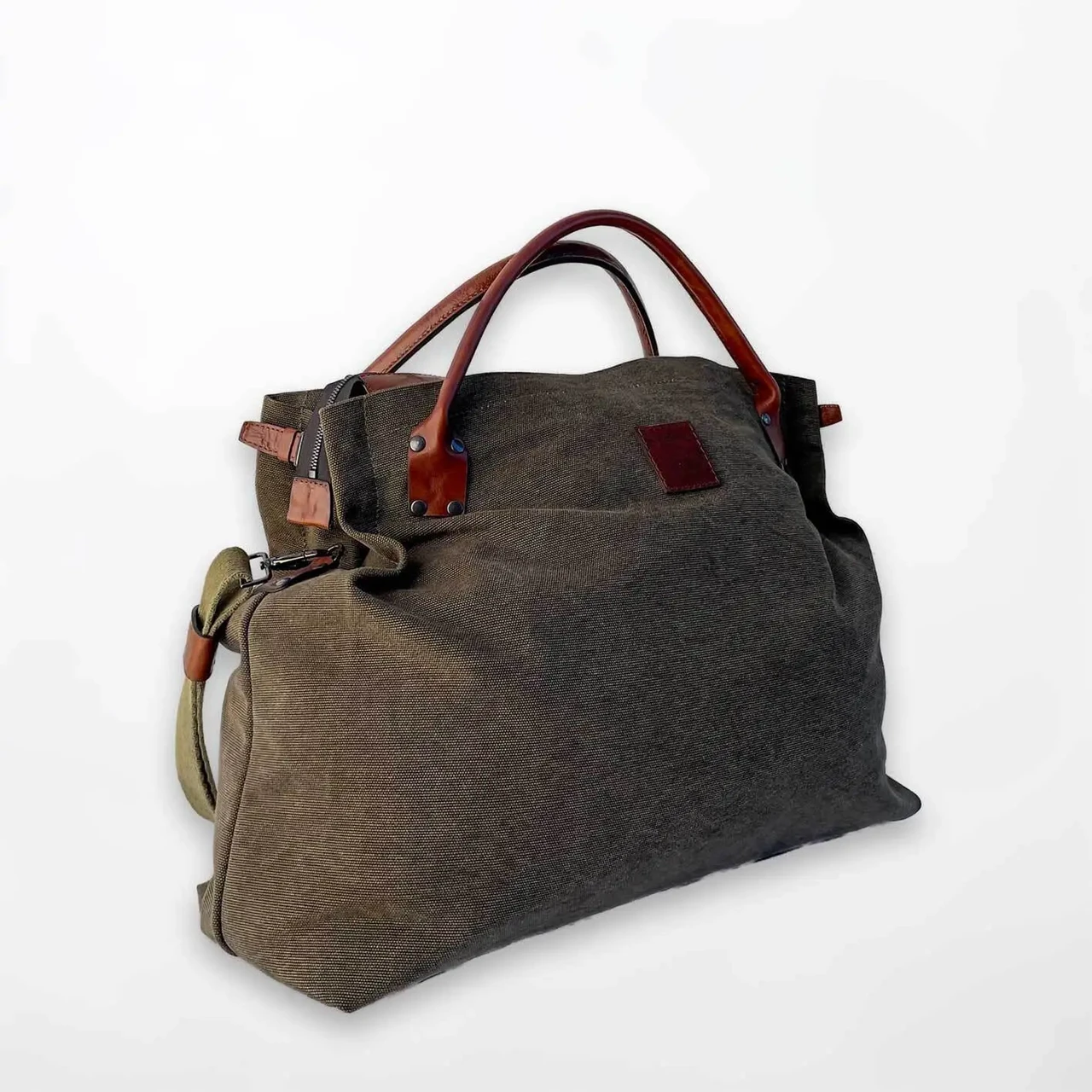 A bag made of strong water and dirt repellent canvas for weekend. The bag has a leather zippered back pocket. There are two additional pockets inside, one of them also has a zipper. Comfortable, adjustable strap. Available in different colors.